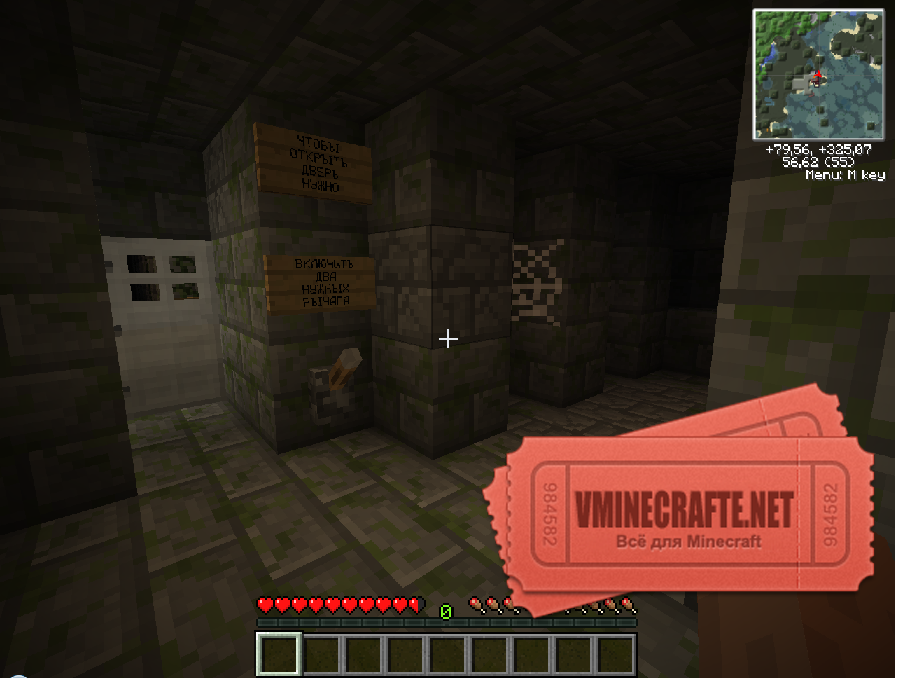 Вы очнулись в грязной комнате, и вам надо выбраться наружу. А чтоб выбраться вам предстоит думать, проходить испытания, искать и нажимать на рычаги! Вообщем интересная, чуть страшная по своей атмосфере. Карта не длинная поэтому вы сможете пройти как чёрная молния. Если честно данная карта на прохождение для minecraft 1.3.1 лично мне очень понравилась, автор карты некий Alex, за что ему спасибо и давайте его поблагодарим в комментарии ведь это его первая карта, по его словам он будет создавать ещё карты для Minecraft 1.3.1.