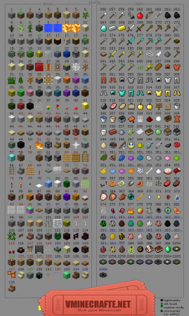Не знаете какой ID к вашего любимого блока в майнкрафт? Или просто очень нужно... Тогда эта статья вам точно поможет, потому что мы покажем на одной картинке всё что вам нужно. Все блоки из minecraft 1.3.1 и все ID предметов в minecraft 1.3.1.